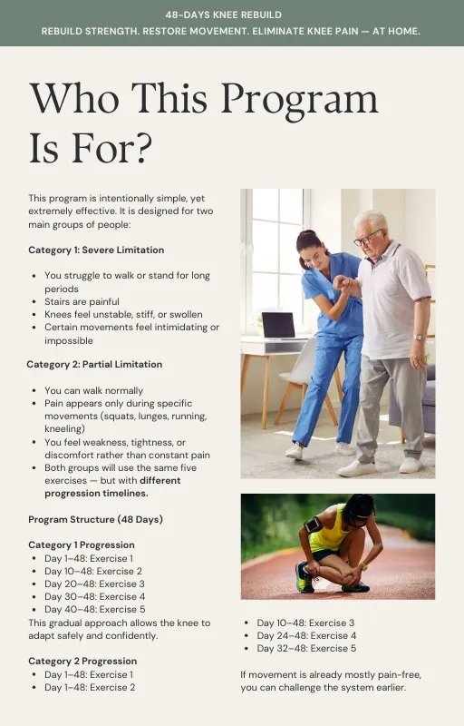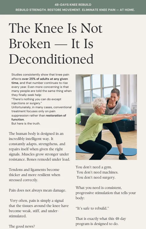These aren’t professional athletes—they are people just like you who decided to stop living with knee discomfort. Here is what happened when they committed to the 48-Day Rebuild.
